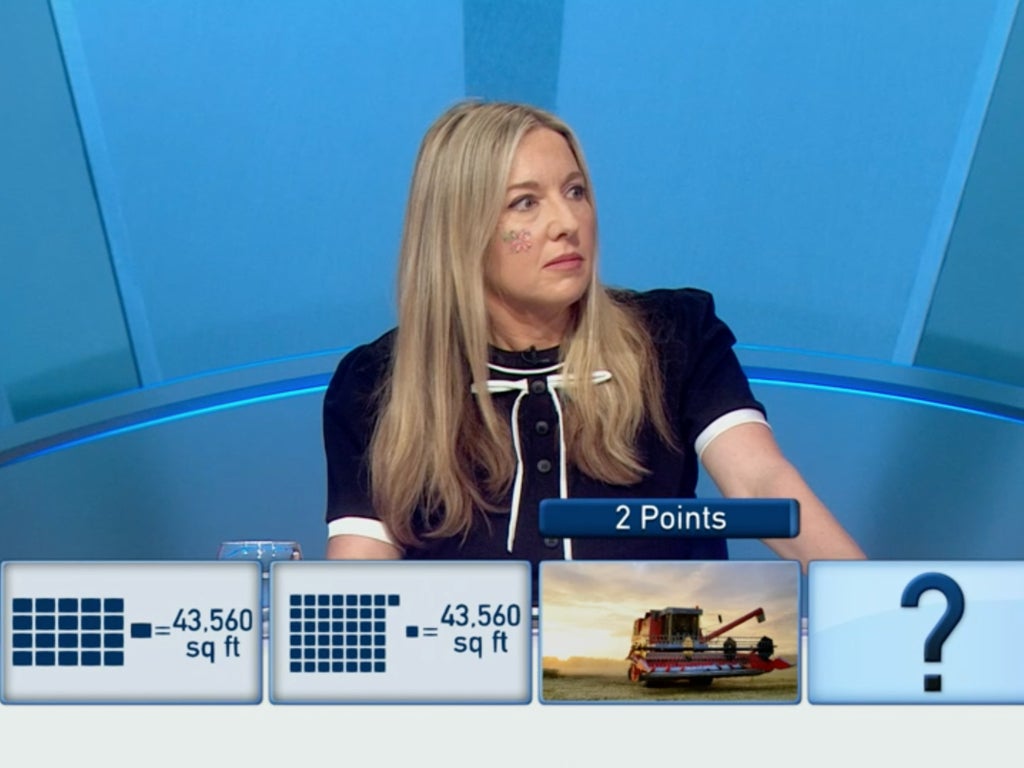 Team The Jukeboxers correctly guessed that the last item was a key, in a reference to The Wurzels’s No 1 hit song “The Combine Harvester”, which features the line: “I got 20 acres and you got 43 / Now I got a brand new combine harvester and I’ll give you the key.”