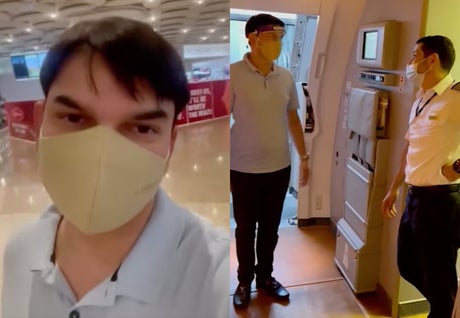 He goes on to show the near-empty Mumbai airport in the video before entering the aircraft. Mr Javeri was cheered and welcomed with an applause by the crew as he boarded the flight.