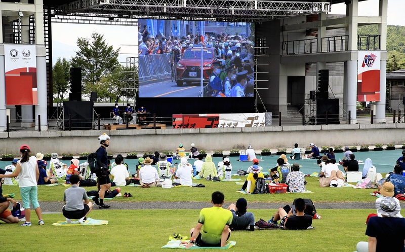 The first Live Site event where spectators can view an Olympic competition on a large outdoor screen was held in a municipality where a cycling competition took place on Saturday. In the village of Yamanakako, Yamanashi Prefecture, rules were established to deny entry to people living in areas where the coronavirus is spreading.