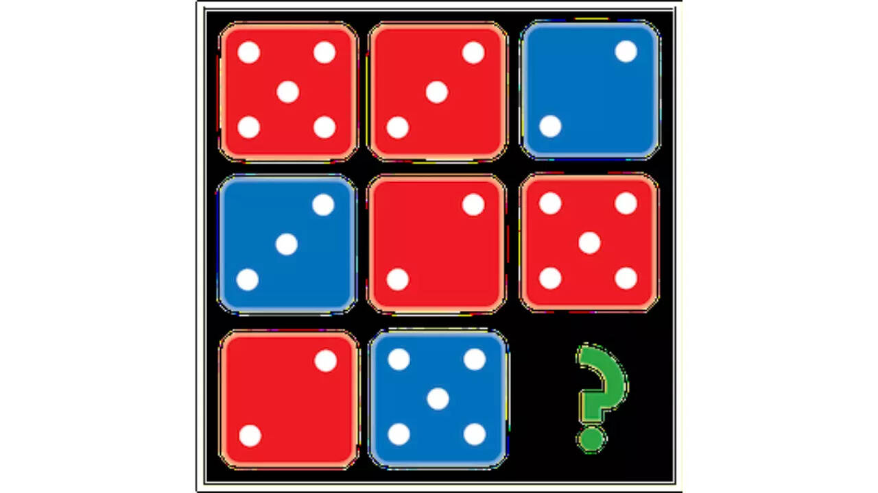 The puzzle displays three rows of dice, each containing three dice, except for the last row, which has an empty slot. Familiar with how a dice works? You shuffle it, throw it on a surface, and then observe the topmost face to determine the final number.