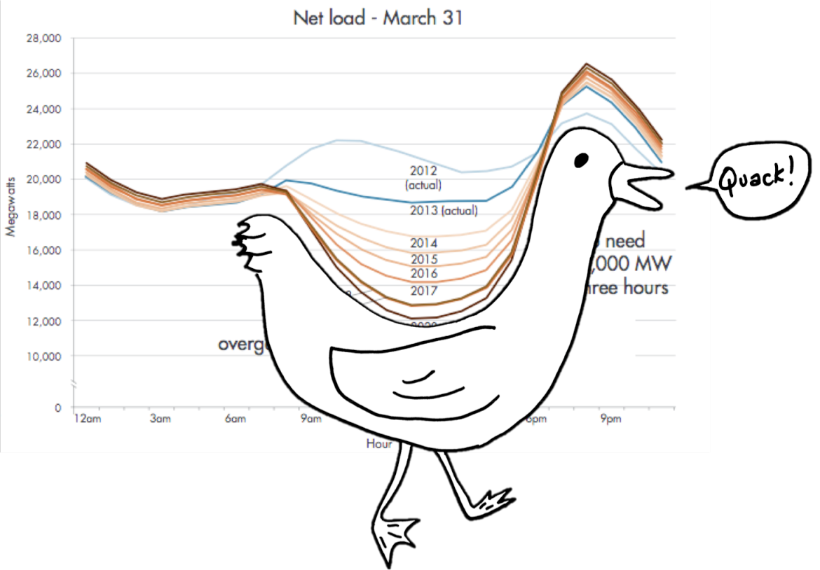The term refers to the way the flood of rooftop solar power during the middle of the day hollows out demand for electricity drawn from the grid.