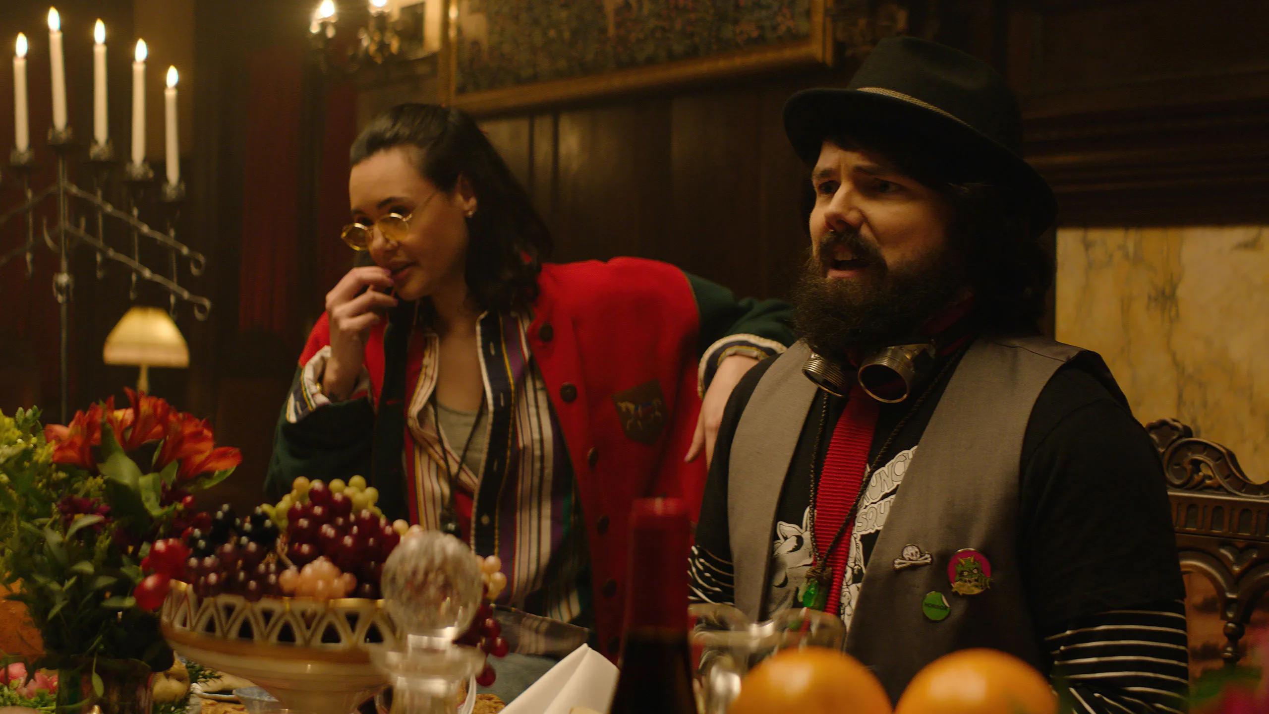 Bartok has gathered the quintet to aid in a ritual that, if completed, will summon a demon and reward them all with power untold, but it’s made clear upfront that Bartok has a hidden agenda, and also that his succubus assistant Farrah (Olivia Taylor Dudley) doesn’t much care for that agenda. In all of this, Onyx himself is the naif. Bowser’s focus is on him, naturally; the marquee reads “Onyx,” after all. But his one-way fanboy relationship to Bartok renders him blissfully unaware of literally everything going on around him, good and ill, and likewise funnels Onyx the Fortuitous and the Talisman of Souls into a very specific kind of comedy.