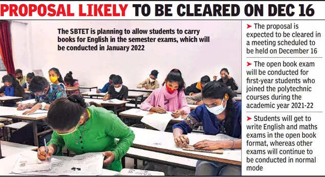 HYDERABAD: Open book exams will be introduced in polytechnic courses starting from this semester as the Telangana State Board of Technical Education and Training (SBTET) is planning to allow students to carry books for English in the semester exams, which will be conducted in January 2022.