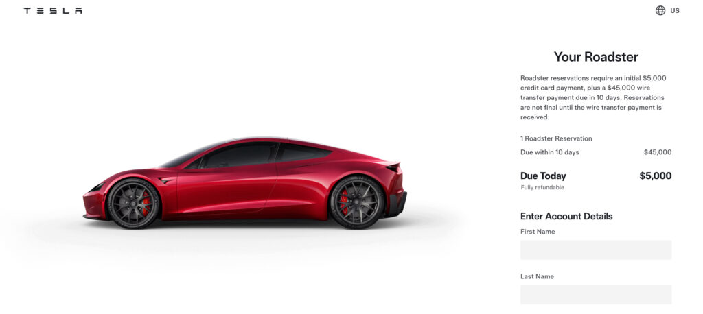 It's worth noting that Tesla's official website is still allowing customers to make reservations for the Roadster, demanding a $5,000 upfront payment and the other $45,000 payment to be made via a wire transfer within 10 days of the initial payment.