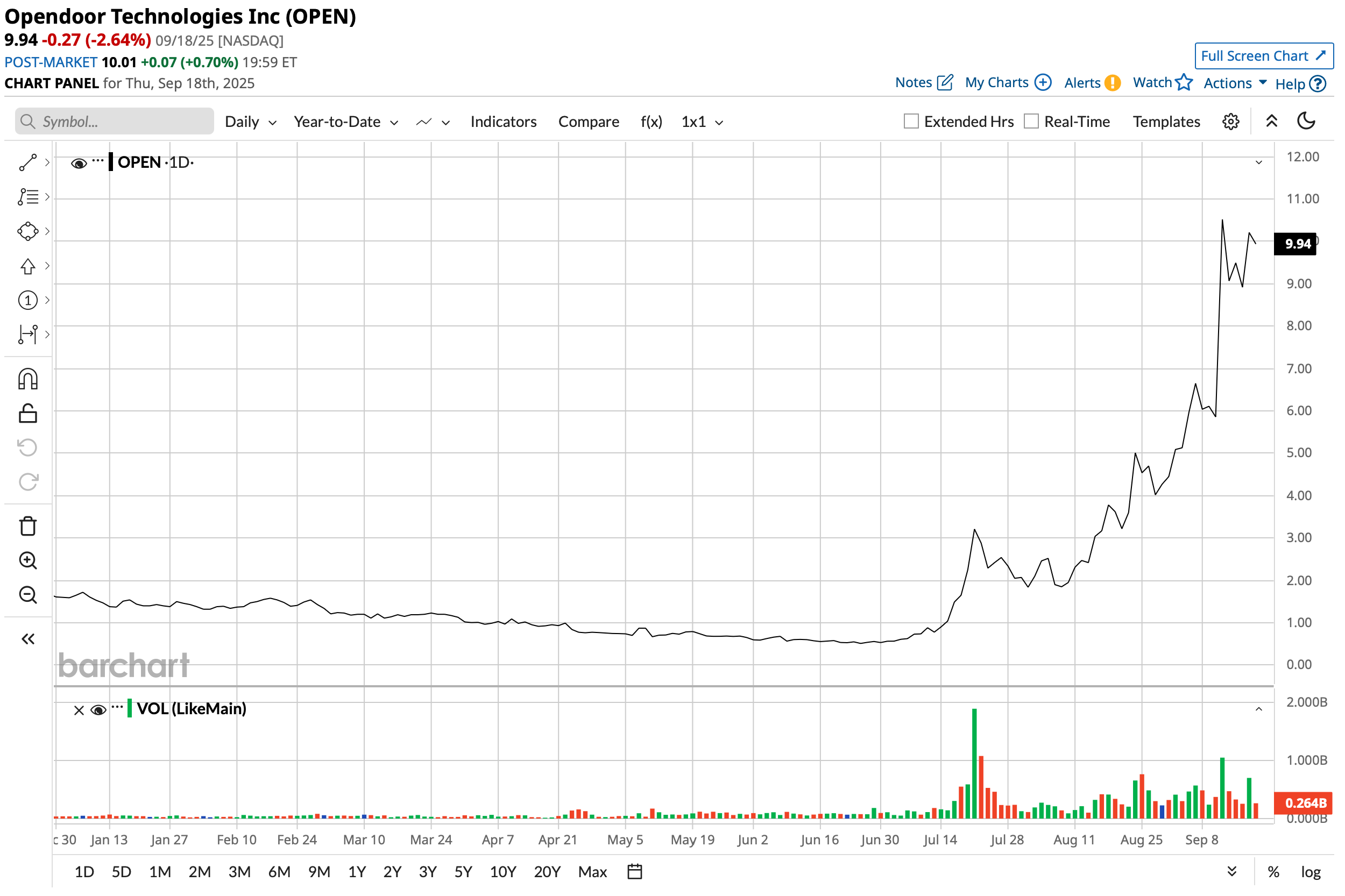 This sent the OPEN stock soaring, which is now up a staggering 521.3% on a year-to-date (YTD) basis, with a market cap of $7.5 billion.