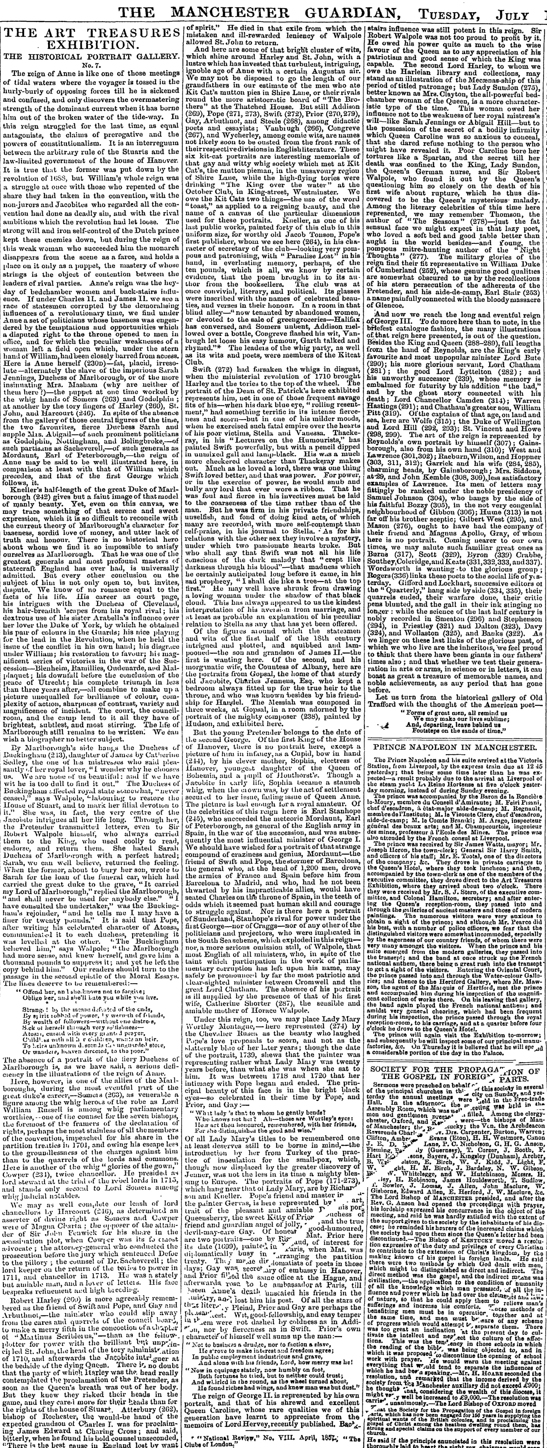 In spite of the absence from the gallery of these central figures of the time, the two favourites, fierce Duchess Sarah and supple Mrs. Abigail – of such prominent politicians as Godolphin, Nottingham, and Bolingbroke,– of such partisans as Sacheverell,– of such generals as Mordaunt, Earl of Peterborough,– the reign of Anne may be said to be well illustrated here, in comparison at least to that of William which precedes and that of the first George which follows it.