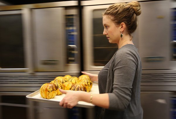 On a kitchen wall, someone's taped up a bunch of fliers for a band called Smashie Smashie. Faulkner says, laughing, "That's Eric's monument to himself." She means chef Eric Bacon; his resume includes Monsoon and Ba Bar. He came to OSL via the Occupy movement, after the Broadway and Pine encampment asked the organization for food, and OSL said sure, if you send some volunteers to help prepare it. Bacon was one of them, five years ago. He ended up staying. "We're given a lot of creative freedom to flourish here," he says. Faulkner says other OSL chefs _ around a dozen total _ have come from the armed forces, Bastyr University, Farestart.