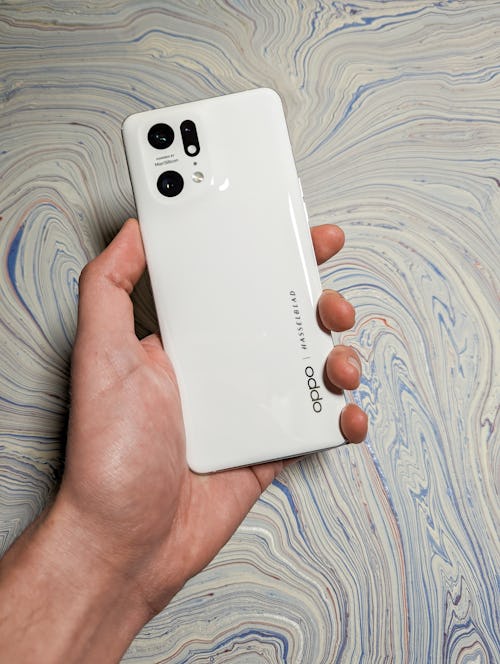 The back of the device is where things get different. Rather than use glass, metal, or plastic like other phones, the Find X5 Pro is made of ceramic in either a black or white finish, which Oppo claims is twice as hard as glass and just as scratch-resistant. The white glaze calls to mind Apple’s ceramic Apple Watch Series 5 and even though it gets smudged easily and most of the time just looks like any other glass phone, I do have to say I love how classy it looks. The strangest thing I’ve appreciated about using a ceramic-backed phone is that when it gets cold — maybe it’s been sitting on my desk by an open window or I just haven’t used it in a while — it gets notably colder than many of the other personal electronics that I own. Weird, but cool.