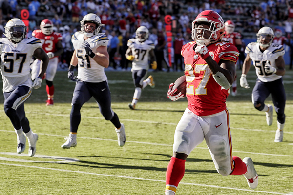The score _ which put the Chiefs ahead by 14 with two minutes left _ marked the third straight game Hunt has run for a touchdown of at least 50 yards. It also effectively put away the Chargers, who lost for the seventh straight time to the Chiefs (0-3), who will now have to wait until Dec. 16 for their next crack at snapping the Chiefs' streak.
