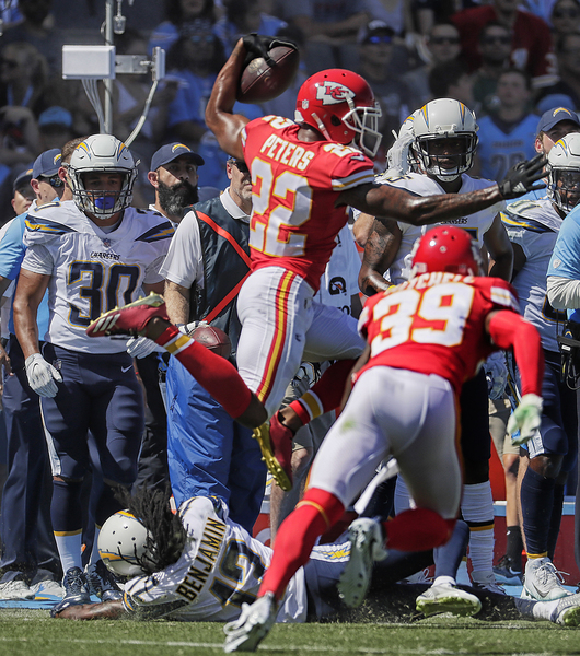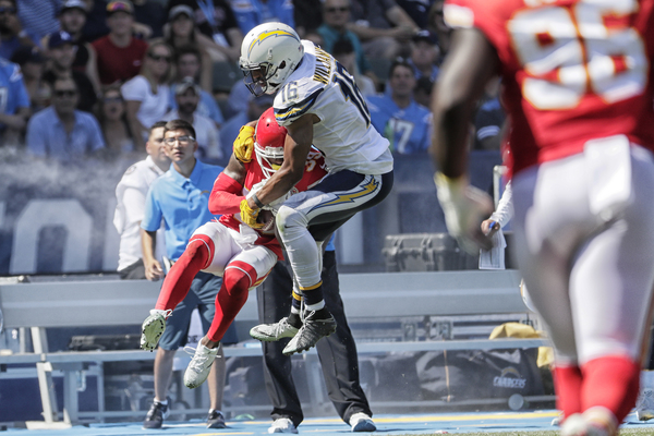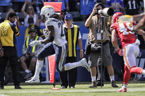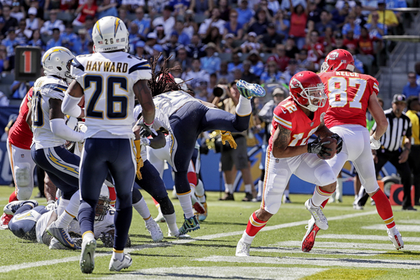 By that point, the 25,000-seat StubHub Center was rocking with a pro-Chiefs vibe. But the Chargers battled back, as Rivers connected on a 44-yard jump ball to 5-foot-10 receiver Travis Benjamin, a third-down gamble that led to their first score, an 11-yard run by running back Melvin Gordon III.