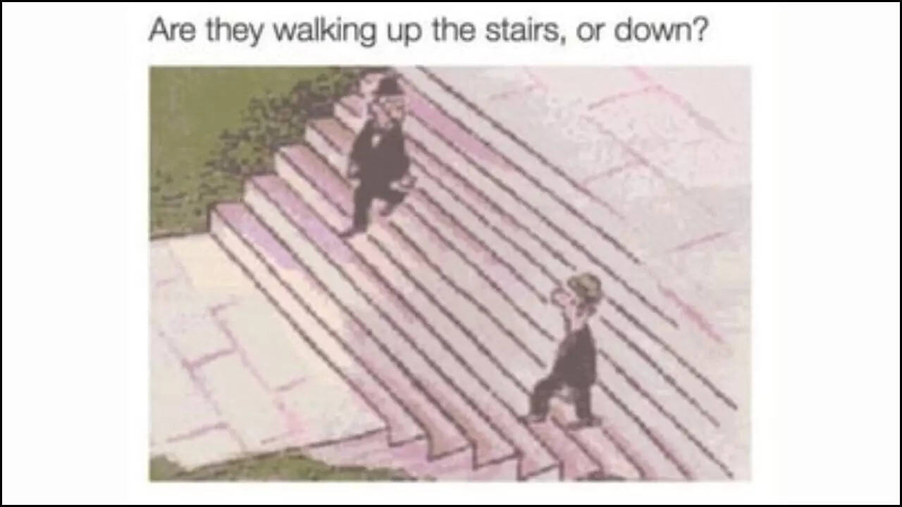 The image depicts two individuals on a flight of stairs, but due to its ambiguous nature, it is unclear whether they are walking up or down the stairs. This particular illusion has captured the interest of many netizens, leaving them guessing and even questioning their visual perception.