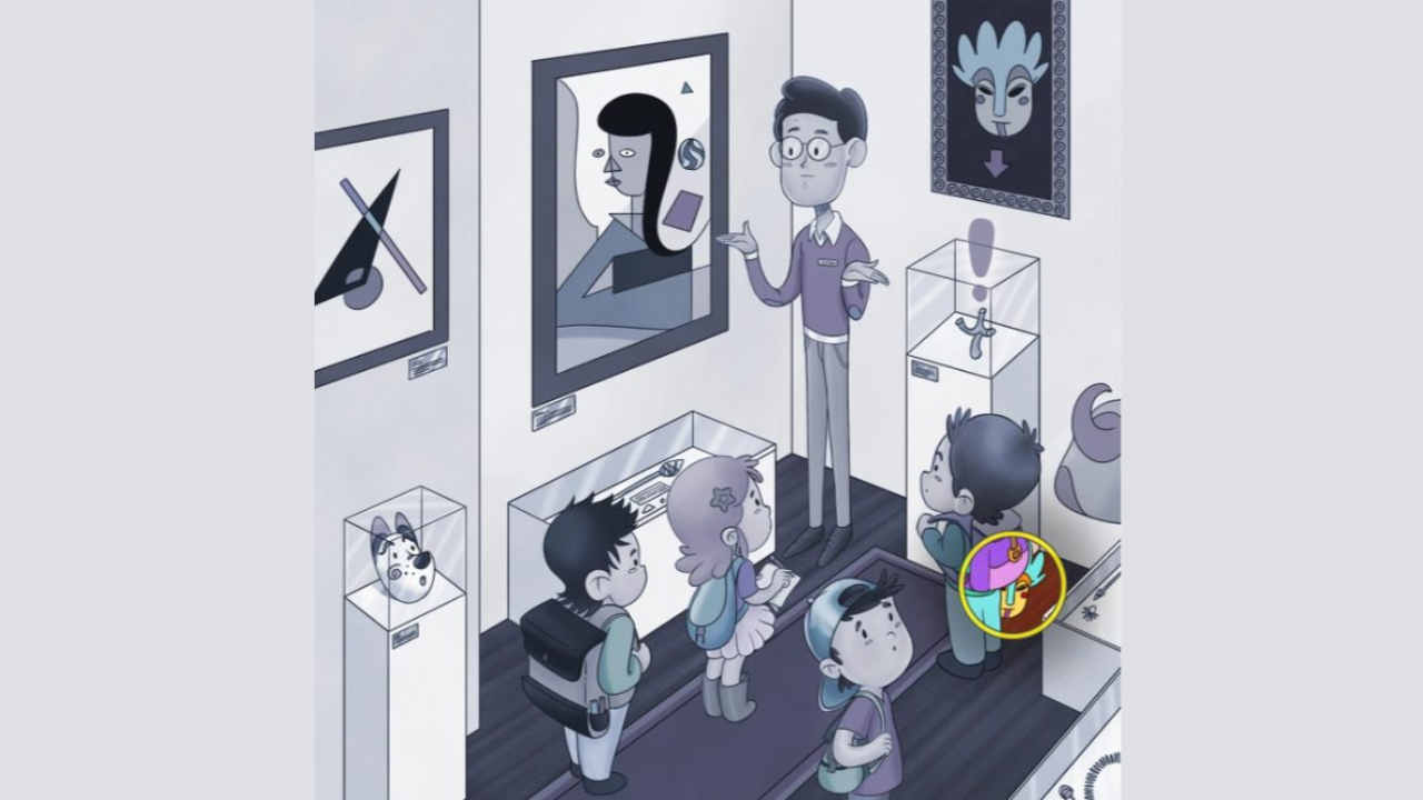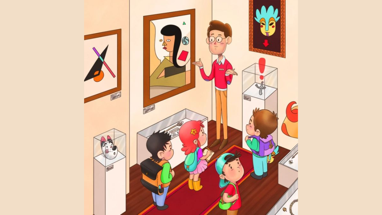 Now once again look at the primary elements of the picture. The museum guide and the four tiny kids. Who do you think would have stolen the mask?