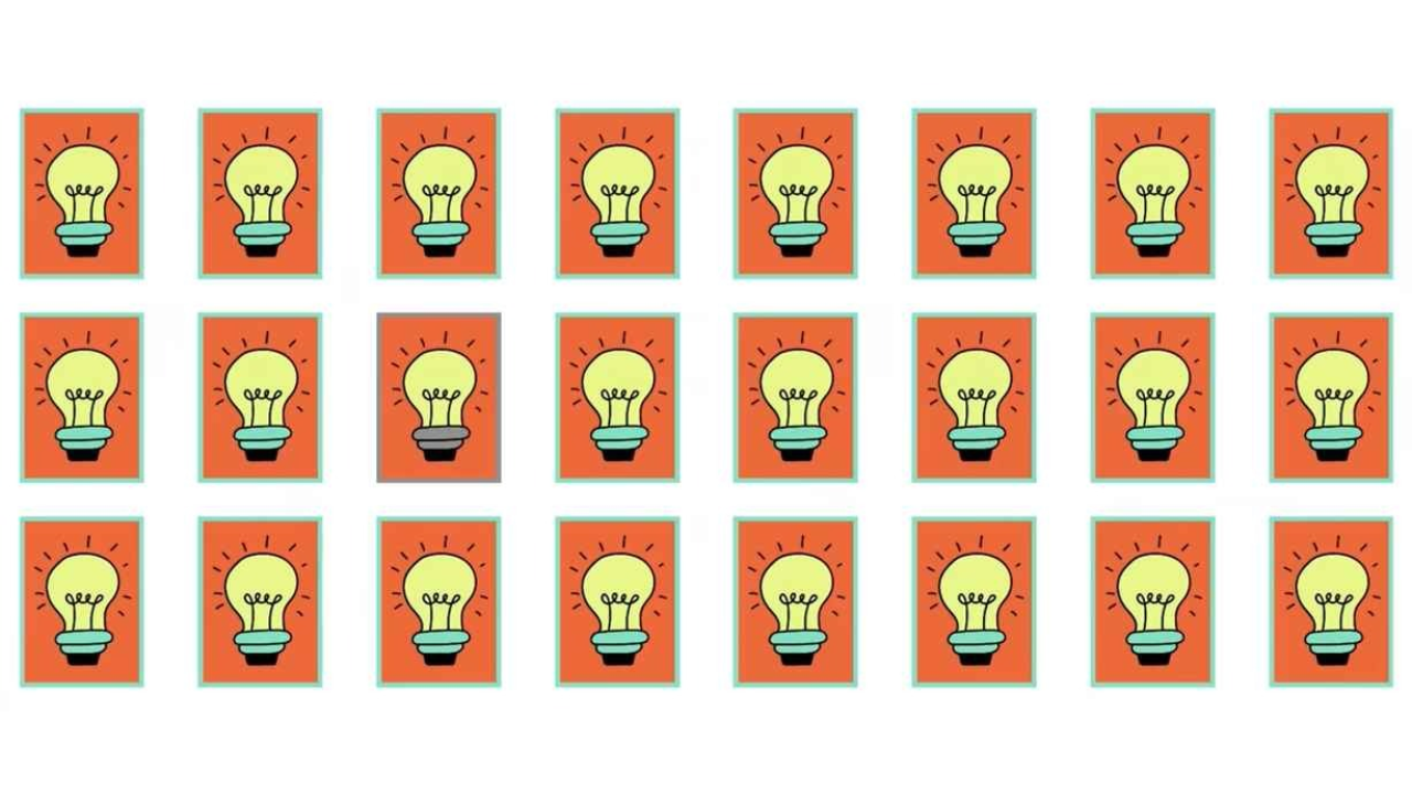 The provided image shows a grid of bulbs. At first glance, all the bulbs look similar, but there is one that differs from the rest. Observers are challenged to find the odd bulb within 3 seconds. This quick test assesses one's observation skills and attention to detail.