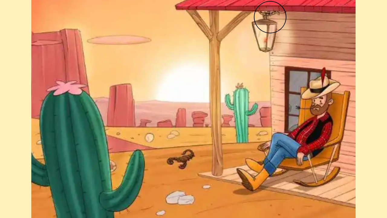 This brain teaser from Bright Side features a cowboy lounging on his balcony while taking in the view of a barren wasteland. The scene in the desert appears to be on a very hot day, with cacti and a scorpion. But the snake is hiding in the shadows, and only those with very good sight have found it. There are just six seconds left to finish this challenge. Are you up for the challenge?