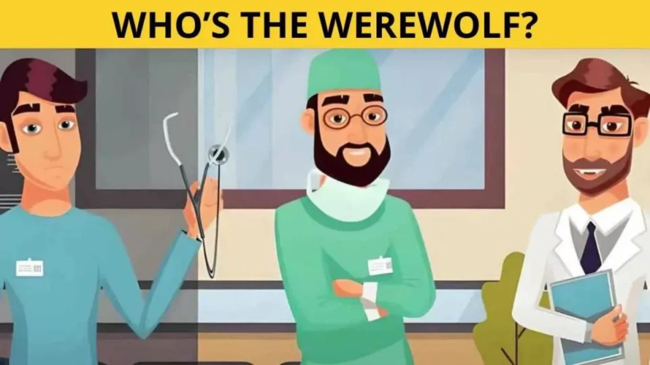 In the image before you, there are three doctors in a hospital—but one of them is not what they seem. Hidden among the medical professionals is a werewolf in disguise! Your task? Find the werewolf in just 11 seconds!