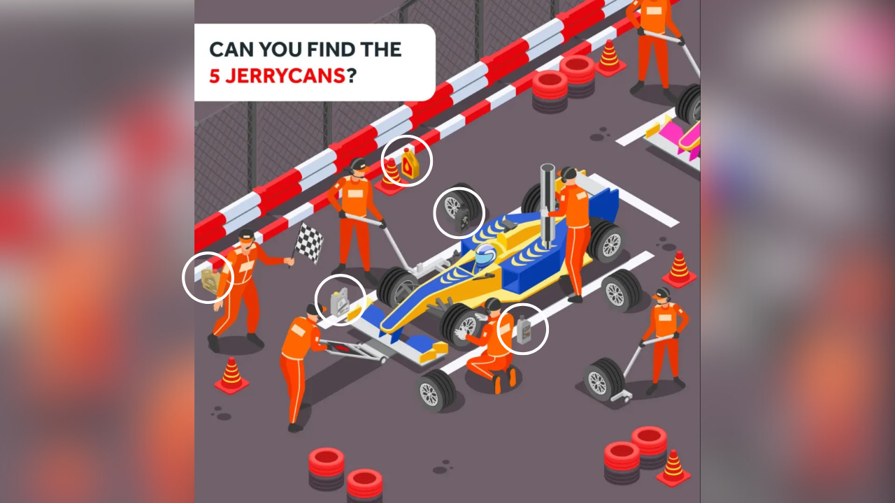 Are you an F1 superfan with a sharp eye for detail? Get ready to put your observation skills to the test with this thrilling optical illusion! Hidden within a chaotic pit stop scene are five petrol cans—but only those with razor-sharp focus can find them within 7 seconds.