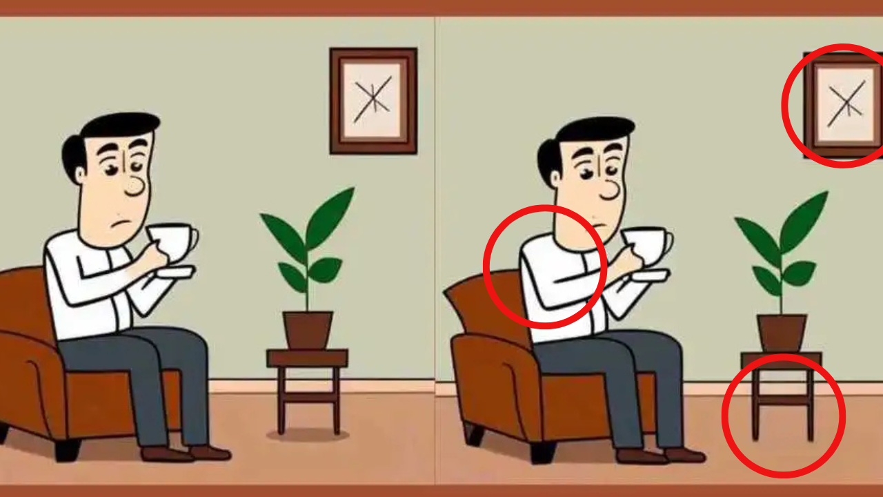 The challenge is simple—there are two images of a man sitting on a sofa, sipping his tea. At first, both pictures look exactly the same. But don’t be fooled! There are three hidden differences between them, and only people with great creativity and sharp observation can spot them in just 7 seconds.