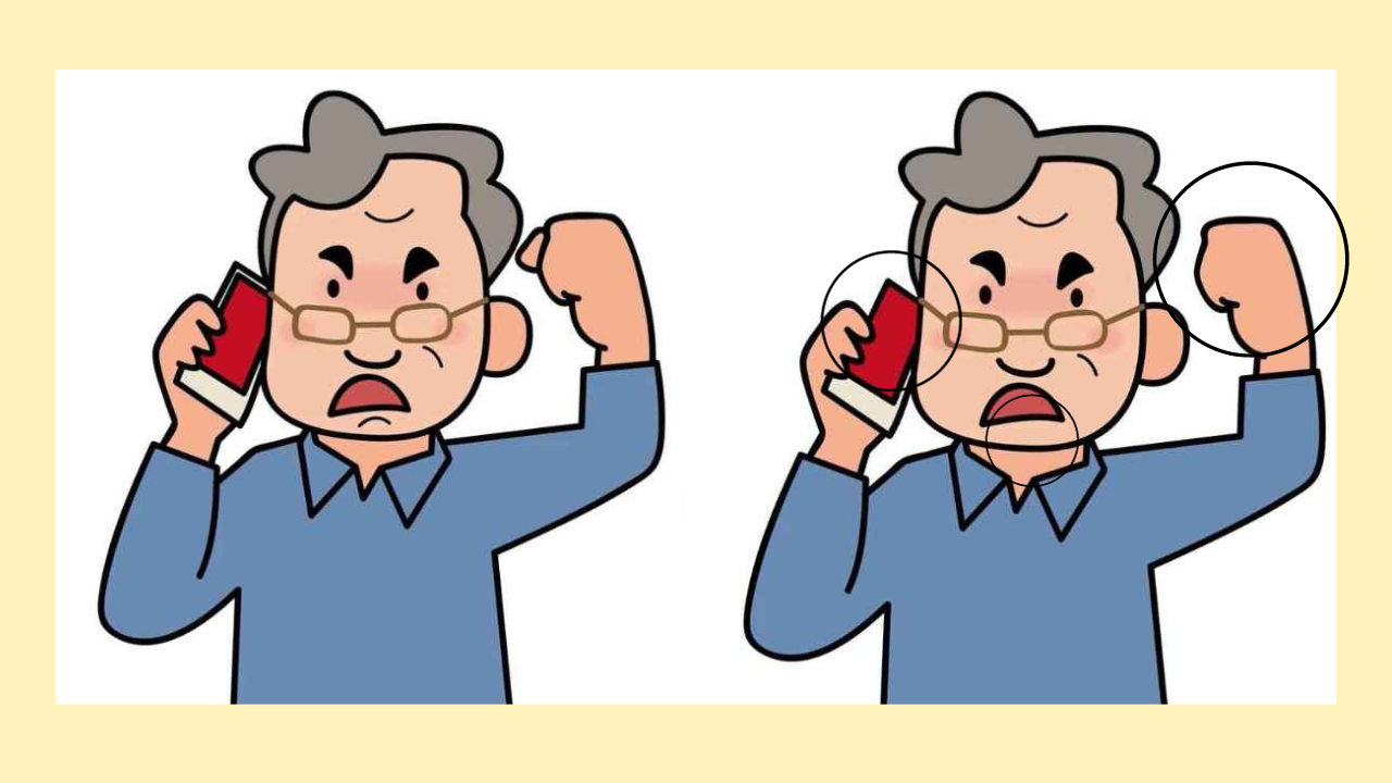Then feel free to try out this spot-the-difference problem right now! Now let's get going! As previously reported, there are two images showing an irate man talking on the phone. At first sight, these photos don't seem all that different, do they?