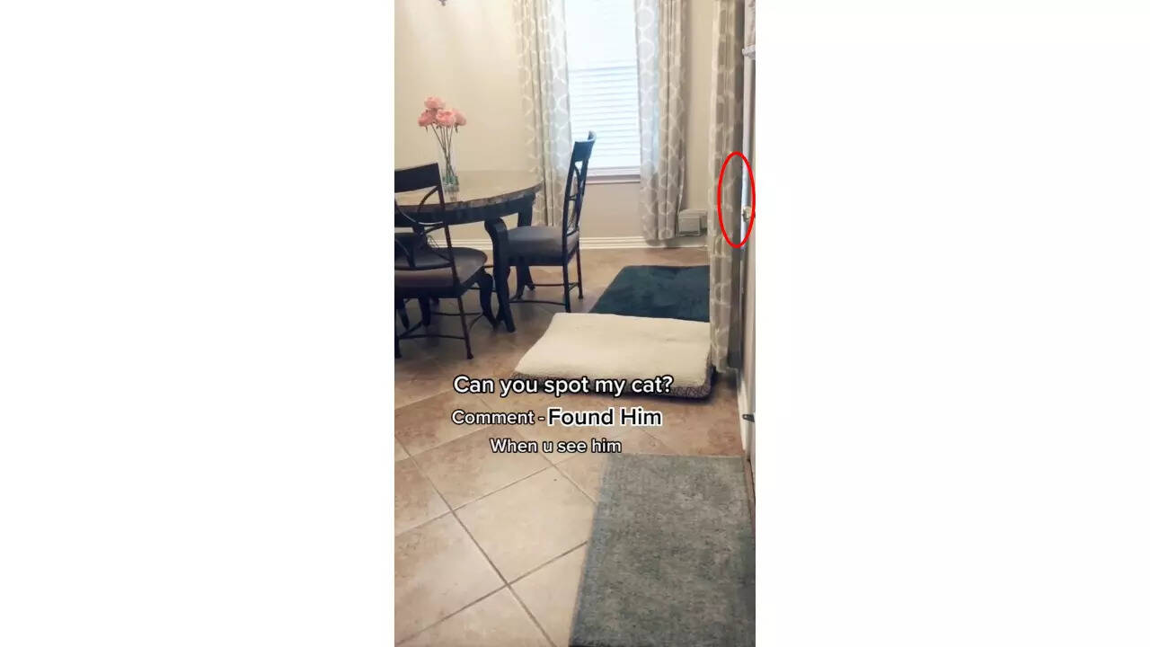 However, one of the cats has decided to hide in this dining room, leaving viewers baffled as to its whereabouts. The video was uploaded with the caption "Can you spot my cat?" and has left many users scratching their heads, wondering where the cat is hiding.