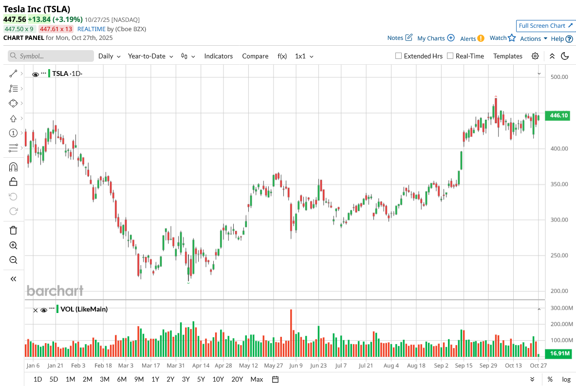 Shares of the EV maker have gained 9.7% on a year-to-date (YTD) basis. TSLA stock initially dropped last Thursday following an earnings miss but ultimately closed higher, supported by strength in the broader market. Still, the stock dropped 3.4% on Friday as investors continued to digest the company’s weak results.