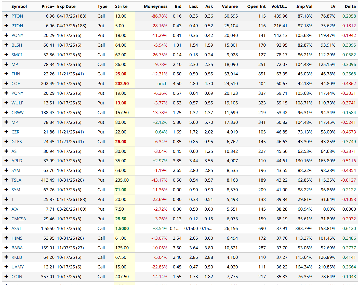 PTON, SMCI, CRWV, TSLA, BABA and COIN all experienced unusual options activity last week.