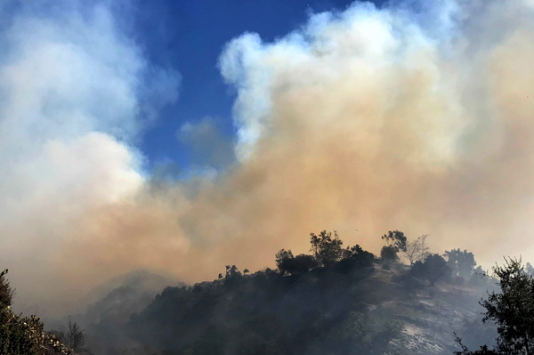 When Lee looked outside her bedroom Monday morning, the palm trees were swaying and a large plume of smoke had overtaken the nearby mountains.