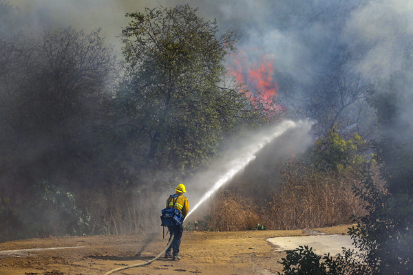 In the Chino Hills area of Corona, west of the Santa Ana River, the Blue Ridge fire burned 1,200 acres and damaged at least one home by Monday afternoon. The extent of the damage was being investigated.