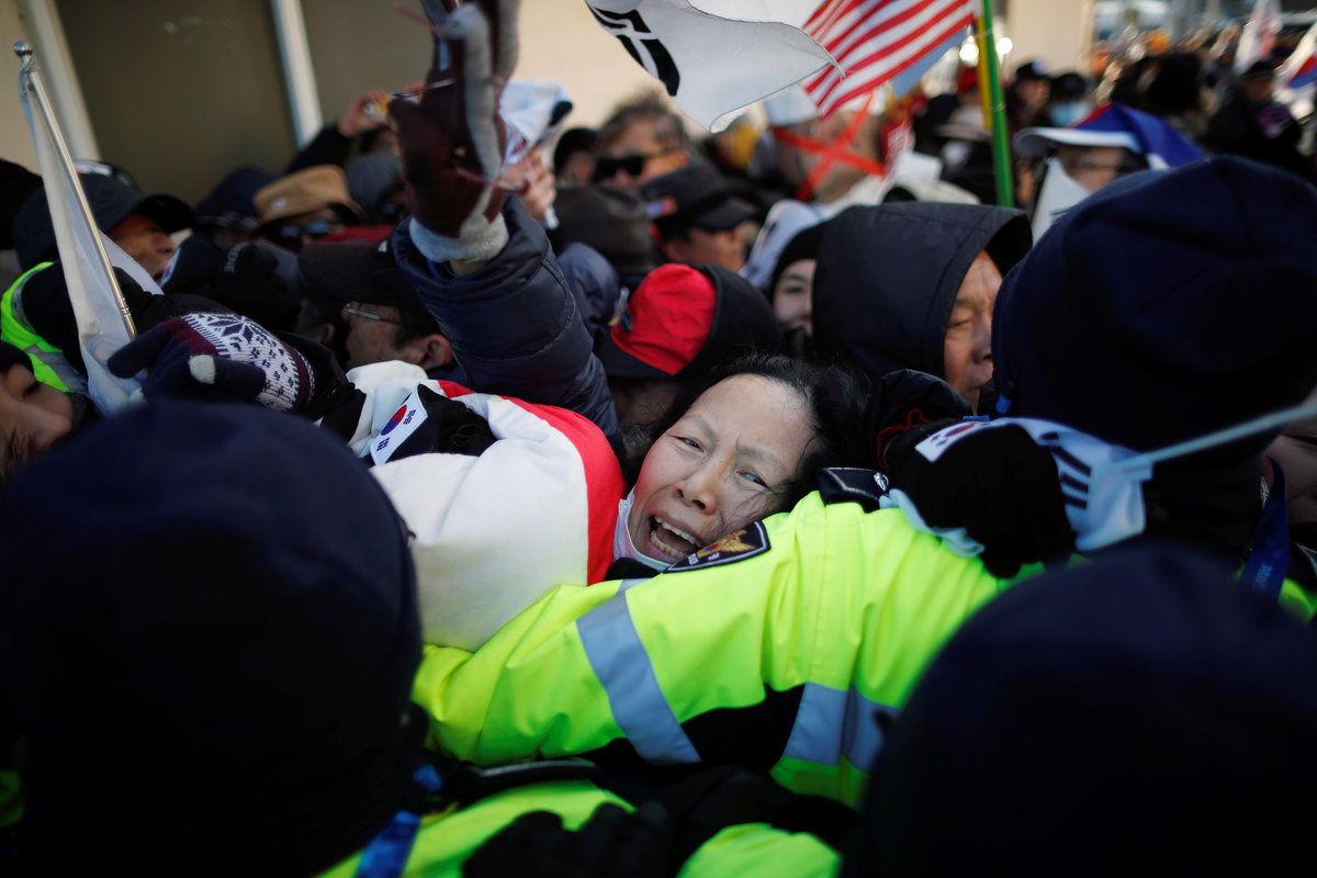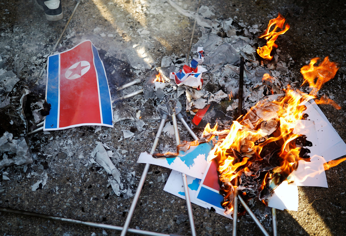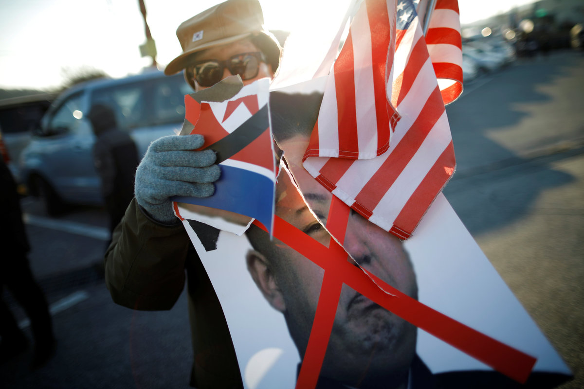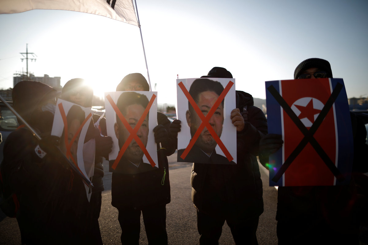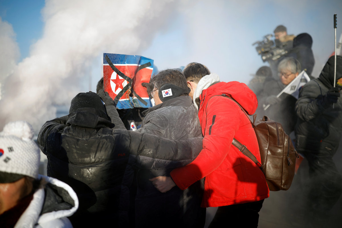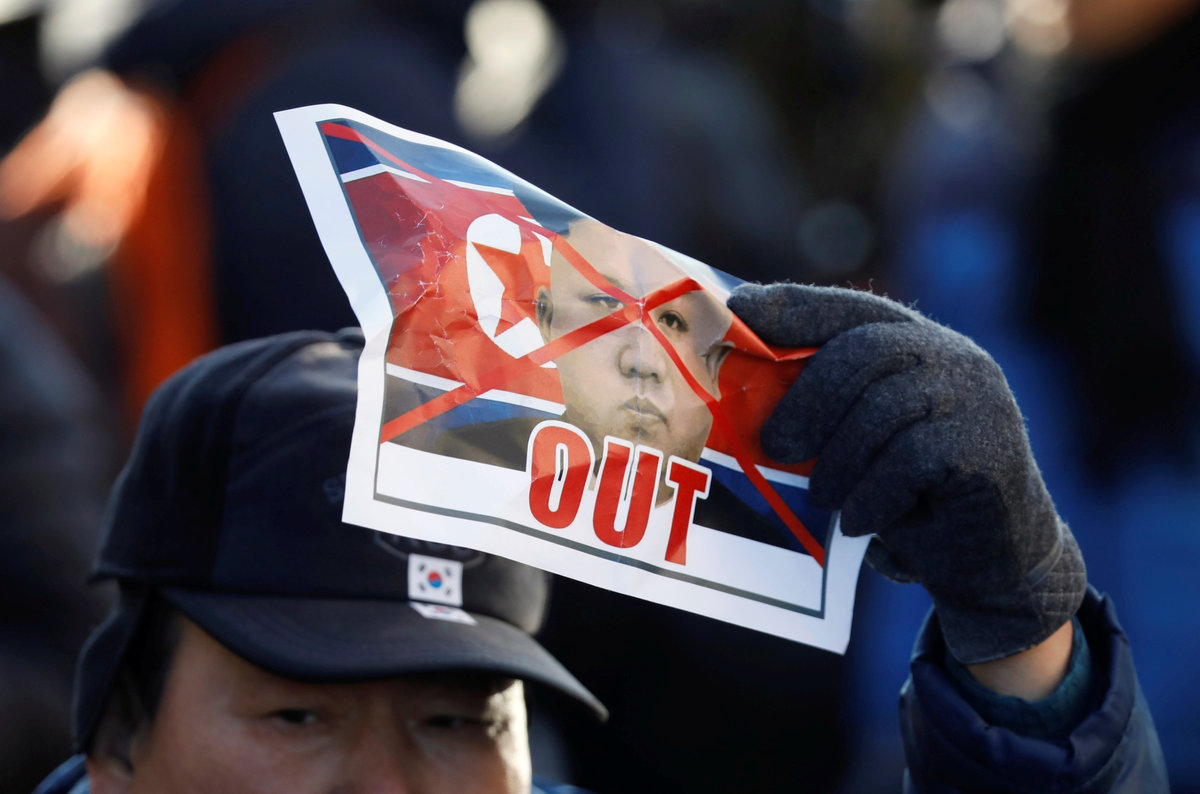 "They come to South Korea to make fools of us by advertising our Pyeongchang Olympics as their Pyongyang Olympics," said one protester, a 67-year-old man waving a Korean flag who gave only his last name of Shin.