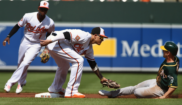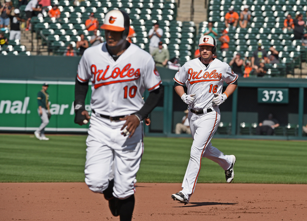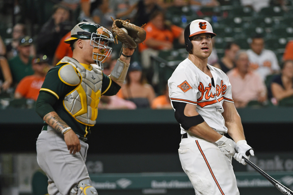 Alec Asher and Richard Bleier combined to pitch three innings of scoreless relief, but Darren O'Day allowed a solo homer to Khris Davis in the ninth.