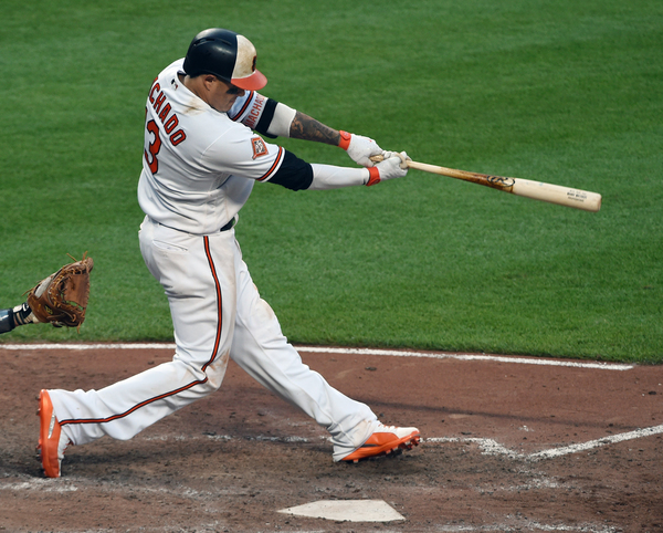 Machado finally got the Orioles on the scoreboard in the sixth inning, launching a line drive well up in the center-field bleachers. That retied him with Schoop for the team lead. Both are on pace to hit 35 this year.