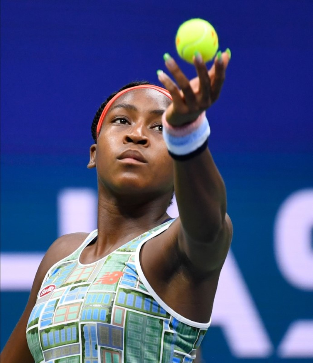 Coco Gauff of the USA serves to Naomi Osaka of Japan in the third round on day six of the 2019 U.S. Open tennis tournament at USTA Billie Jean King National Tennis Center. Mandatory Credit: Robert Deutsch-USA TODAY SportsAug 31, 2019; Flushing, NY, USA; Naiomi Osaka of Japan returns a shot against Coco Gauff of the United States in a third round match on day six of the 2019 U.S. Open tennis tournament at USTA Billie Jean King National Tennis Center. Mandatory Credit: Danielle Parhizkaran-USA TODAY SportsAug 31, 2019; Flushing, NY, USA;