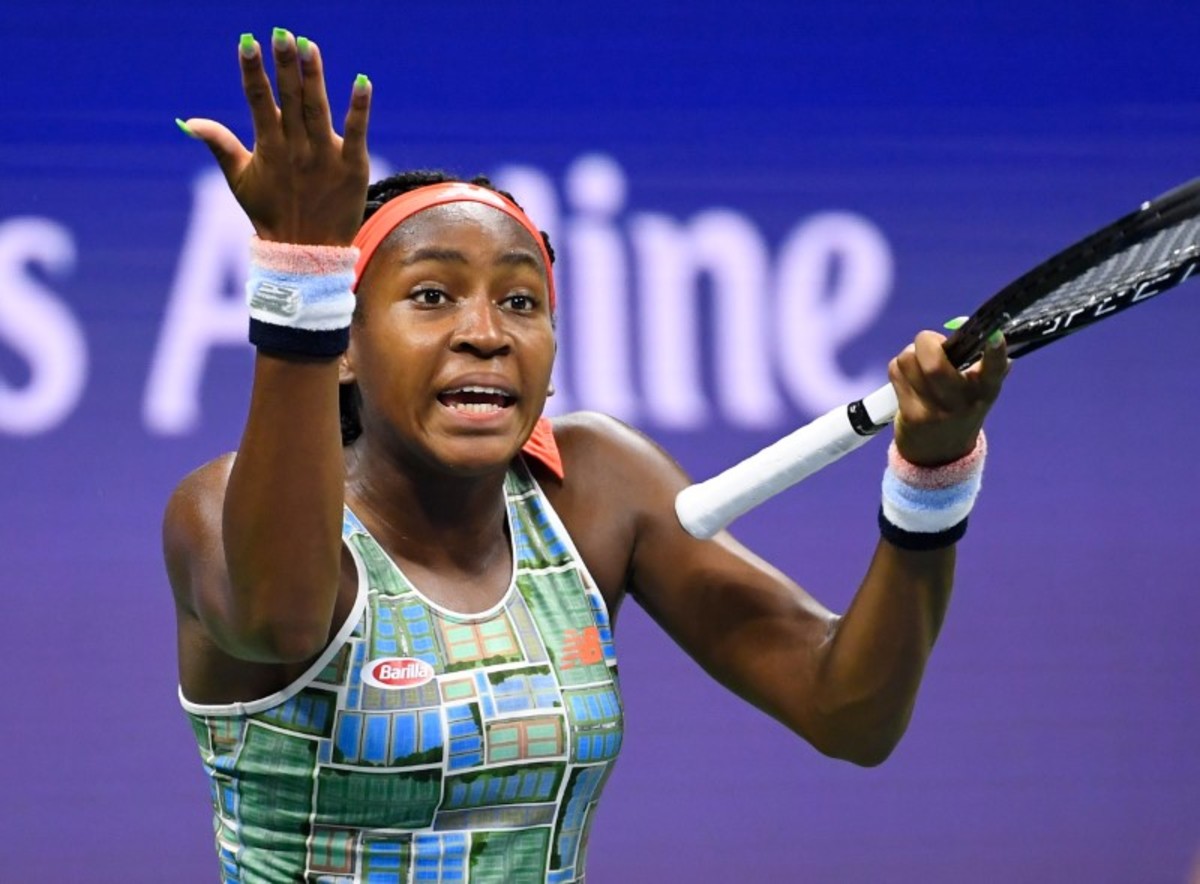 Coco Gauff of the USA after dropping a game to Naomi Osaka of Japan in the third round on day six of the 2019 U.S. Open tennis tournament at USTA Billie Jean King National Tennis Center. Mandatory Credit: Robert Deutsch-USA TODAY SportsAug 31, 2019; Flushing, NY, USA;