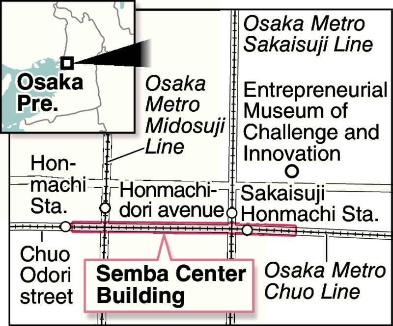 OSAKA CITY -- Located under an elevated road in the center of Osaka City is the Semba Center Building, a huge shopping complex stretching about one kilometer east to west. The Semba Center Building is a symbol of the Semba district, which has long been home to wholesalers of clothing and other items.