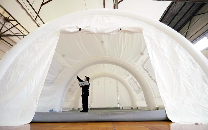 In response to the ongoing spread of novel coronavirus infections, a manufacturer based in Osaka City is increasing production of medical tents that can isolate patients and provide examination bays. Taiyo Kogyo Corp. manufactures large tents, including the one used as the roof of the Tokyo Dome.