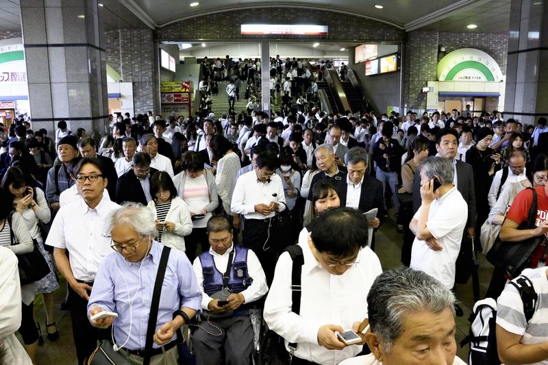 At JR Osaka Station, the platforms were closed to commuters and others, causing the station building to be packed with people. A 37-year-old man from Toyonaka who was sitting down at the station said he was on the way to his company on a Hankyu train when the earthquake occurred. He was stranded in the train for about 30 minutes and then walked to Osaka Station.