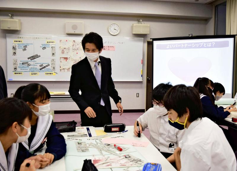 In early October, Kenichiro Nishimura, 35, told second-year students at Tajima Junior High School in Osaka, "We're going to learn about romantic relationships today."