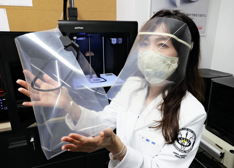 Amid a shortage of masks and goggles at medical facilities worldwide due to the new coronavirus outbreak, Osaka University and Charmant, a major manufacturer of eyeglass frames in Sabae, Fukui Prefecture, have developed a shield that covers the entire face using an A4-size clear file and a 3D printer. They have disclosed the design for free.