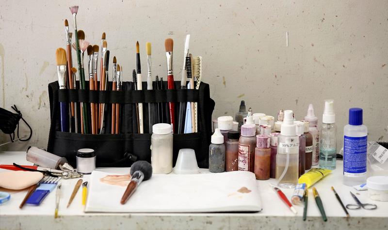 Tsuji spent about five hours on the project but told students that they should finish "within two hours-plus" at a shooting site. "When you do a test makeup, you should take notes on how much time you spend in each stage," he said. "If you keep records, you can answer about how much you need to fix it when something happens."