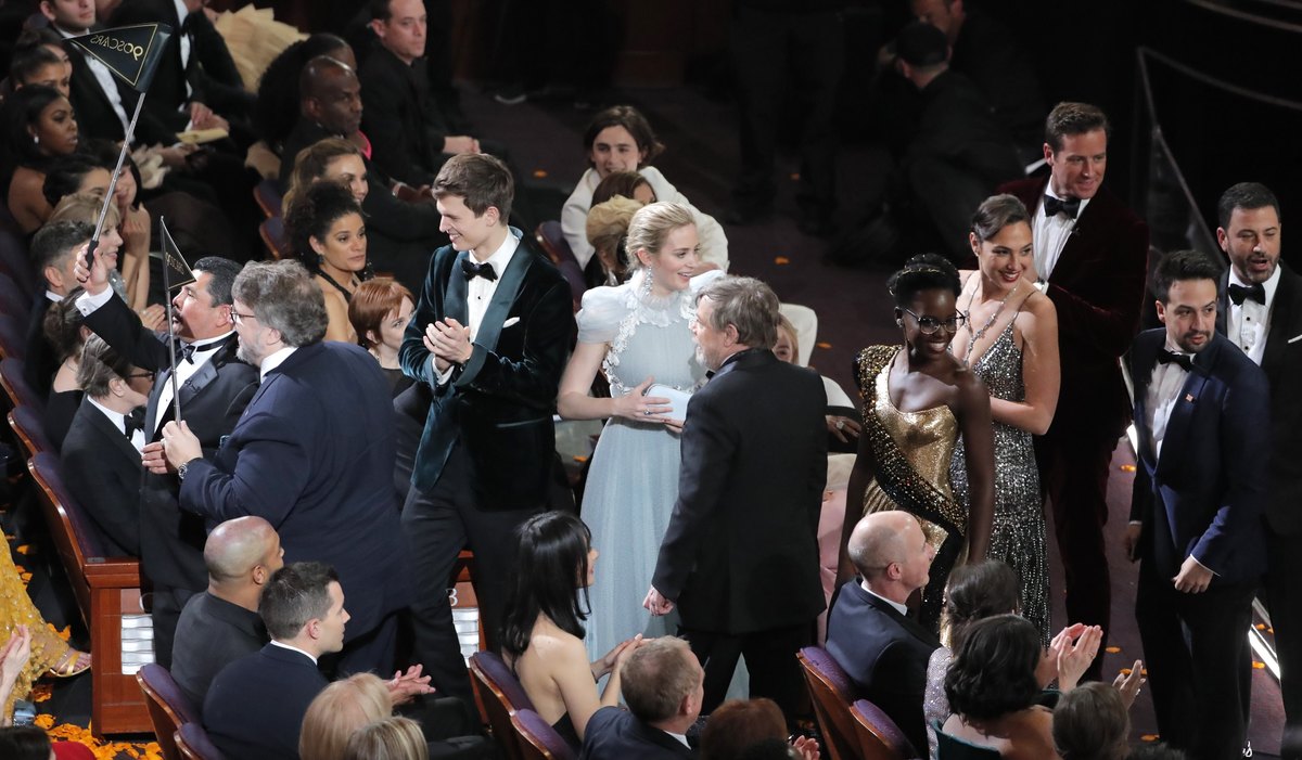 Last year's embarrassing envelope mix-up over the best picture winner was turned into a running joke, with Warren Beatty and Faye Dunaway returning for a second year to announce the top prize.