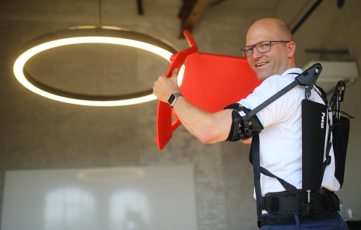 The family-owned company has tested the 'Paexo', a wearable upper-body exoskeleton designed to ease the physical strain of repetitive overhead assembly work, on 30 workers at a Volkswagen <VOWG_p.DE> plant in Bratislava.