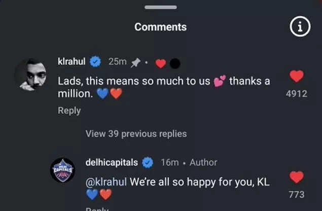 Replying to the video, Rahul expressed his gratitude, saying, "Lads, this means so much to us, thanks a million."