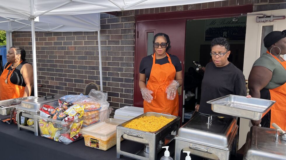 A few blocks from Mt. Bethlehem, vendor Raheema Lewis brought a tent, tables, barbecue and other supplies in a U-Haul truck to the park near the northwest corner of Sacramento and Ogden Avenues and was selling hotdogs and cheeseburgers. A former restaurant worker, Lewis offered that on a good festival day she could pull in as much as $2,000 — money she’s saving to open her own restaurant.