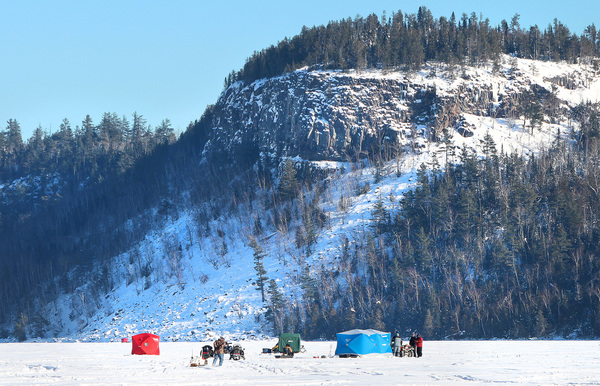 They weren't alone on this opener. Perhaps a couple dozen anglers, some in pop-up fishing shelters and some fishing out in the open, had staked out territories across the frozen lake. About a mile of Clearwater is outside the Boundary Waters, and another four miles stretches eastward into the wilderness.