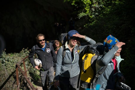 With big smiles on their pale faces, the 15 participants exited the Lombrives cave to a round of applause and basked in the light of day while wearing special glasses to protect their eyes after so long in the dark.