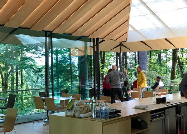 Cantilevered and surrounded by trees, the glass-walled cafe service ranges from frothy, jade green matcha to sencha, hojicha and genmaicha teas, accompanied by Japanese sweets. Colorful shibori _ balls of soft, sweet yellow-, green- and blue-hued dough encasing a red bean-paste center _ share menu space with mochi, matcha rolls and honey-sweetened castella, a sponge cake introduced to Japanese palates by 16th century Portuguese traders. There are savory bites, too, yakitori-style fried rice and savory onigiri. But mostly, there is the view. And that sense of Zen.