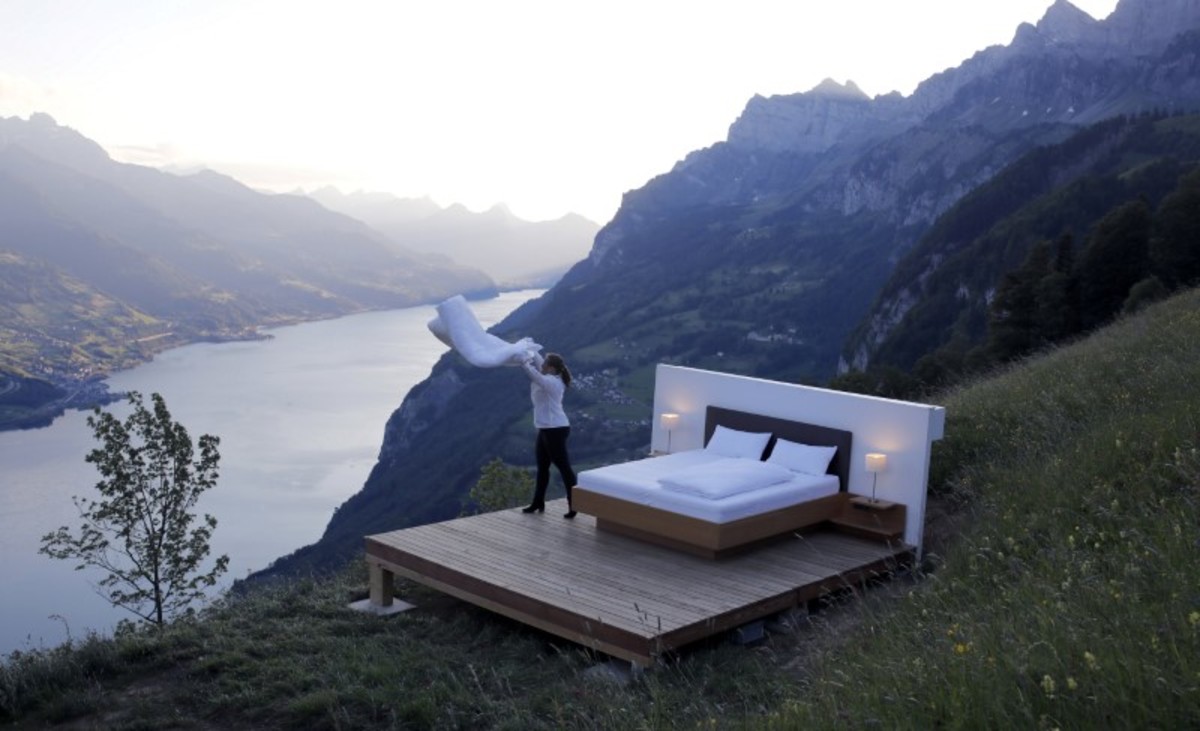 Previous versions of the installation have featured beds in a nuclear bunker and at an elevation of 1,600 meters (5,250 feet) in the mountainous Grisons region of eastern Switzerland.