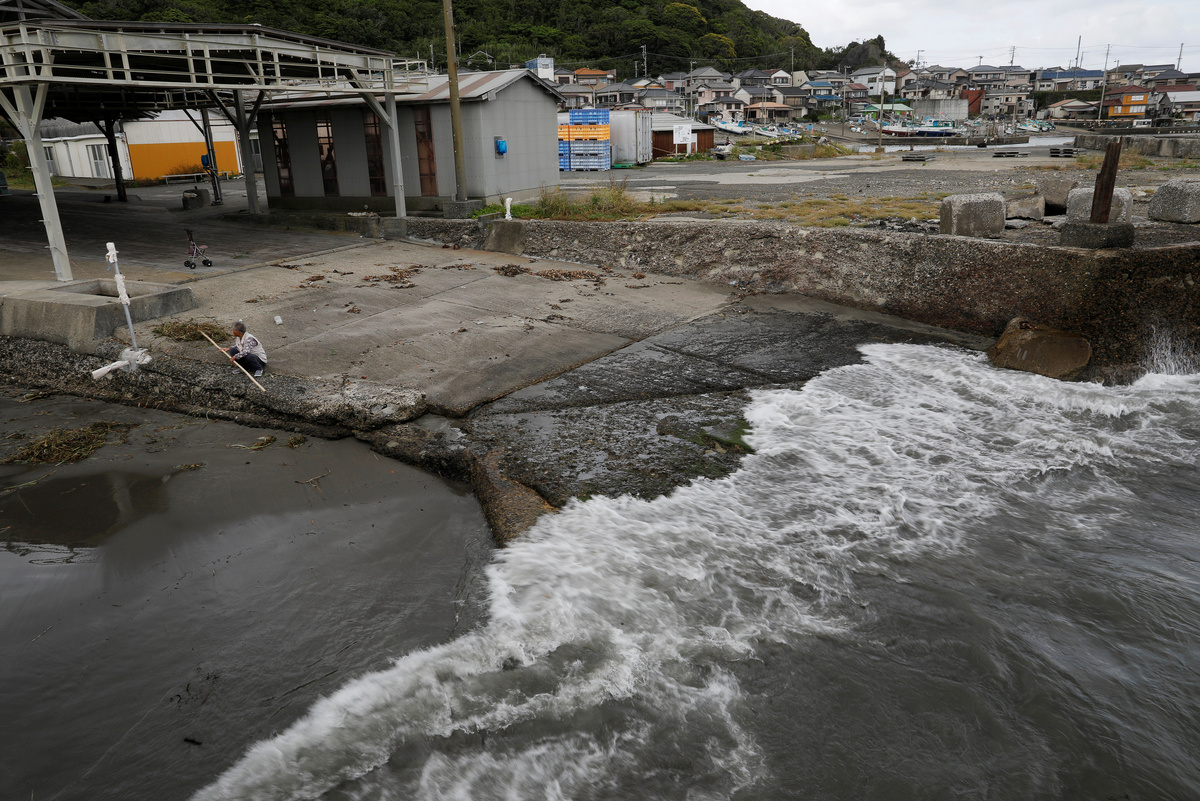 In Wada, though whales are everywhere - including a giant skeleton by a museum and metal whales on a seawall - most people there on a recent afternoon were either surfing, driving, or fishing near the concrete dock where whales are drawn up to be butchered.