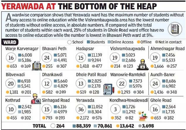 PUNE: A total of 13,642 students of the 88,359 enroled in pre-primary to Std VIII in Pune Municipal Corporation (PMC) schools do not have access to online education, data shared by the PMC education department show.