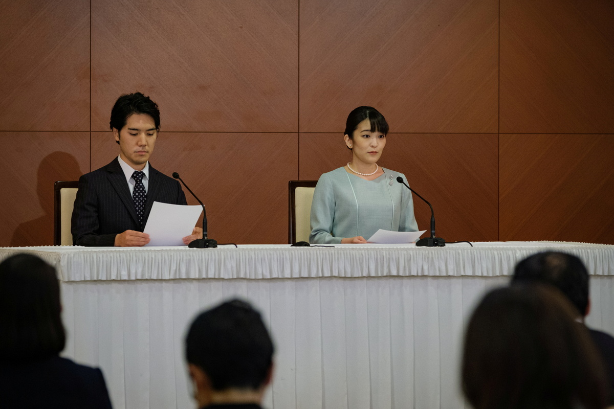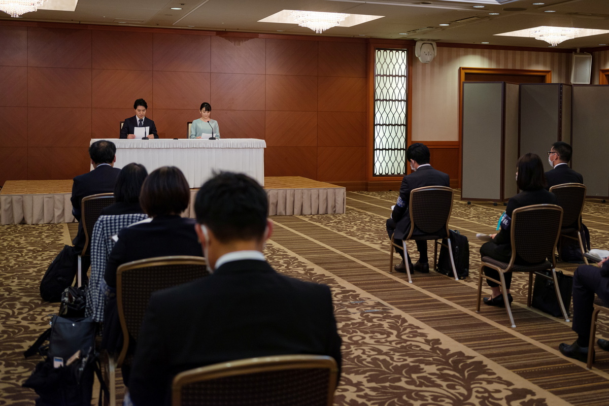 The two announced their engagement in 2017 at a news conference, where the smiles they exchanged won the hearts of the nation. But things soon turned sour as tabloids reported on a money scandal involving Komuro's mother, prompting the press to turn on him.