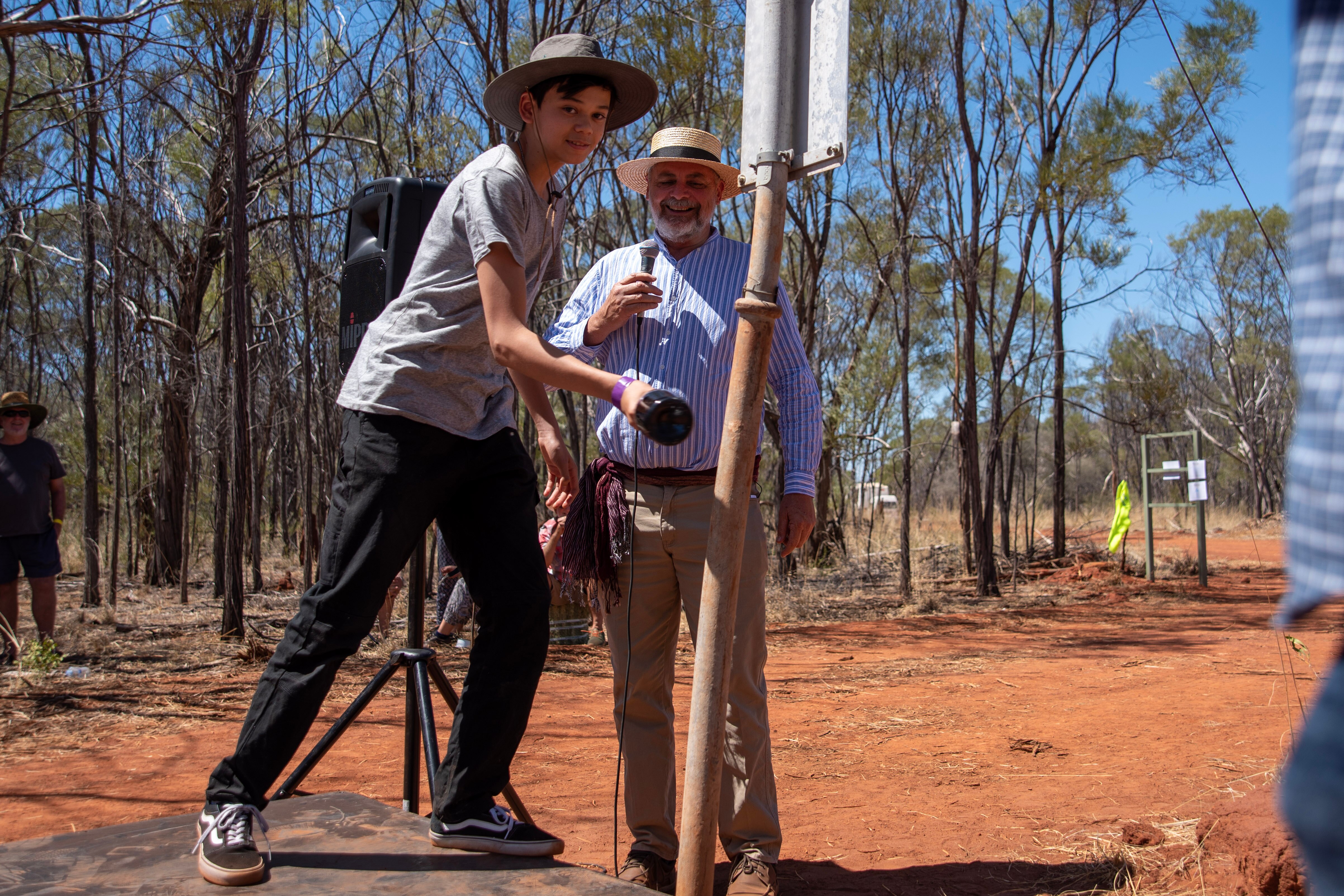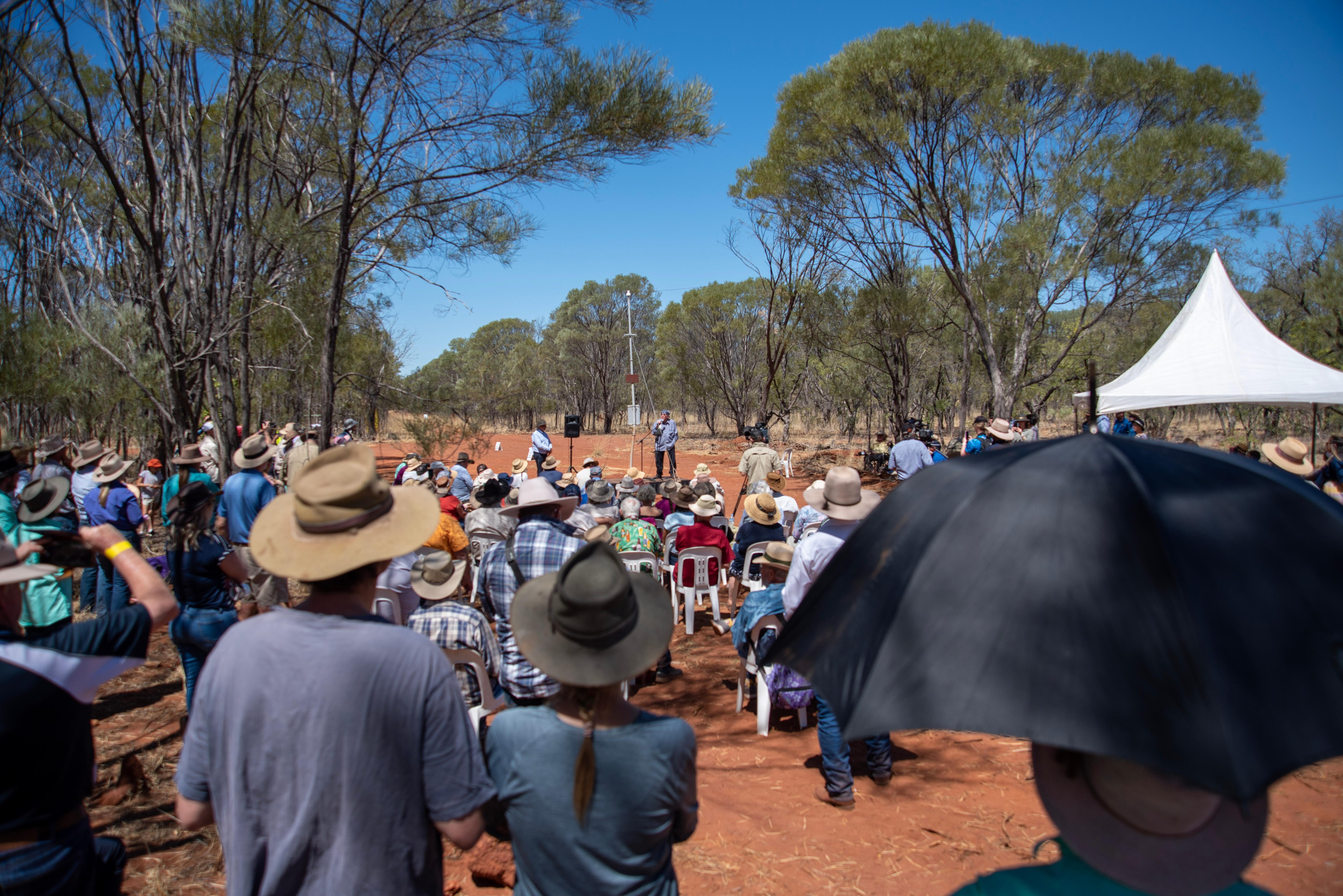 At a tiny, blink-and-you'll-miss-it rest stop on the Stuart Highway, miles from anywhere in both directions, they gathered to celebrate the day the Overland Telegraph Line was opened.